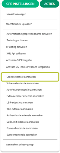 | Stap 4: Groepsextensie aanmaken Klik op Acties en vervolgens op de optie Groepextensie aanmaken. |