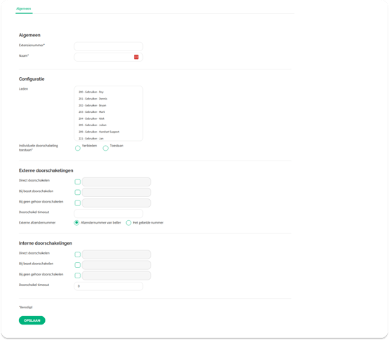 - Extensienummer: geef hier het interne groepsnummer voor deze extensie op.