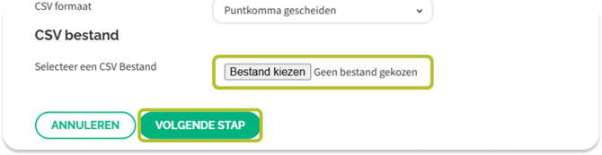 Vervolgens voeg je jouw bestand toe bij het kopje Selecteer een CSV bestand.