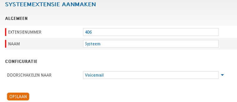 - Extensienummer: geef hier het interne nummer voor deze Systeem Extensie op.