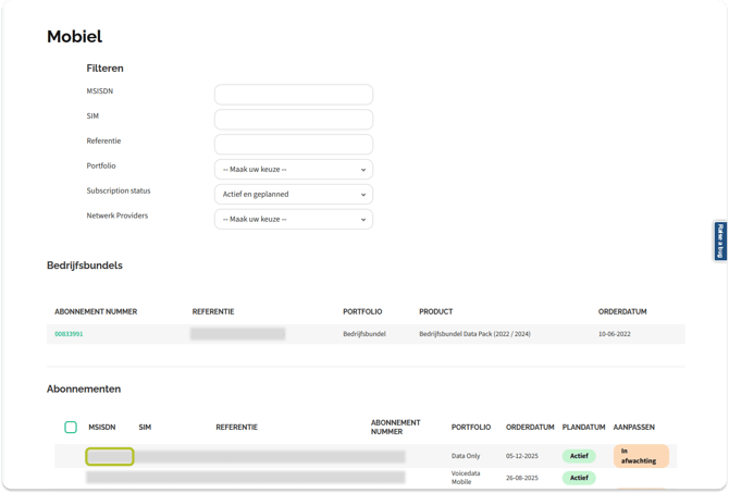 Selecteer vervolgens het 06-nummer waarvan je een Voicemail wil instellen (de onderstaande afbeelding geeft een voorbeeld).