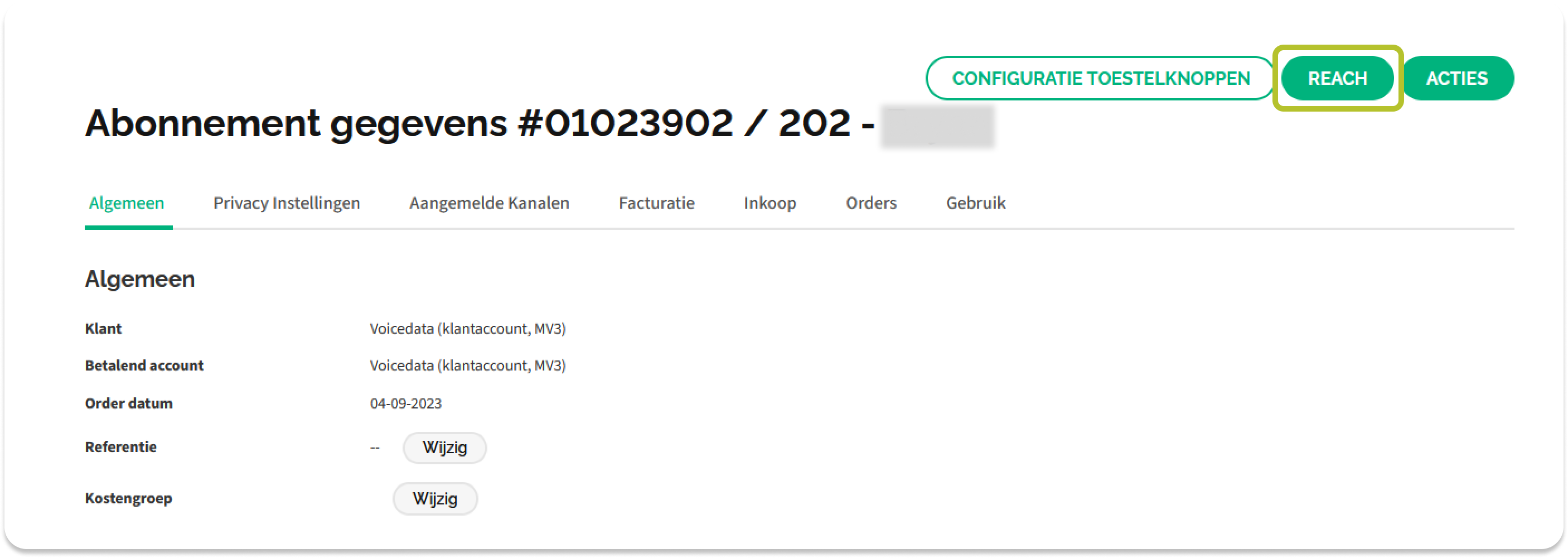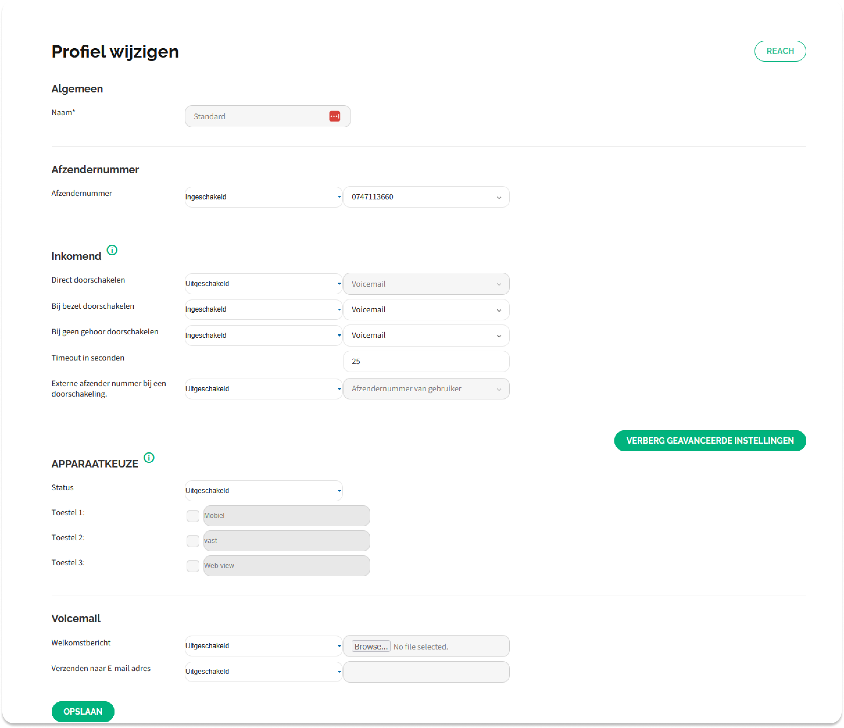 Je komt in het volgende scherm terecht, waarin je op Reach dient te klikken (zie onderstaande afbeelding).