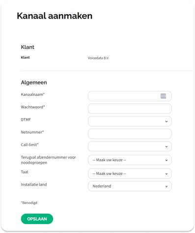 - Kanaalnaam: geef hier het kanaalnaam op. (We adviseren om te beginnen met vdmv, vervolgens de klantnaam en daarna 00 voor het eerste kanaal of 01 voor het tweede kanaal, zo blijft het overzichtelijk).