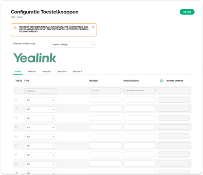 Je bevindt zich nu op een pagina waar je de configuratie van de toestelknoppen (BLF) kunt instellen.